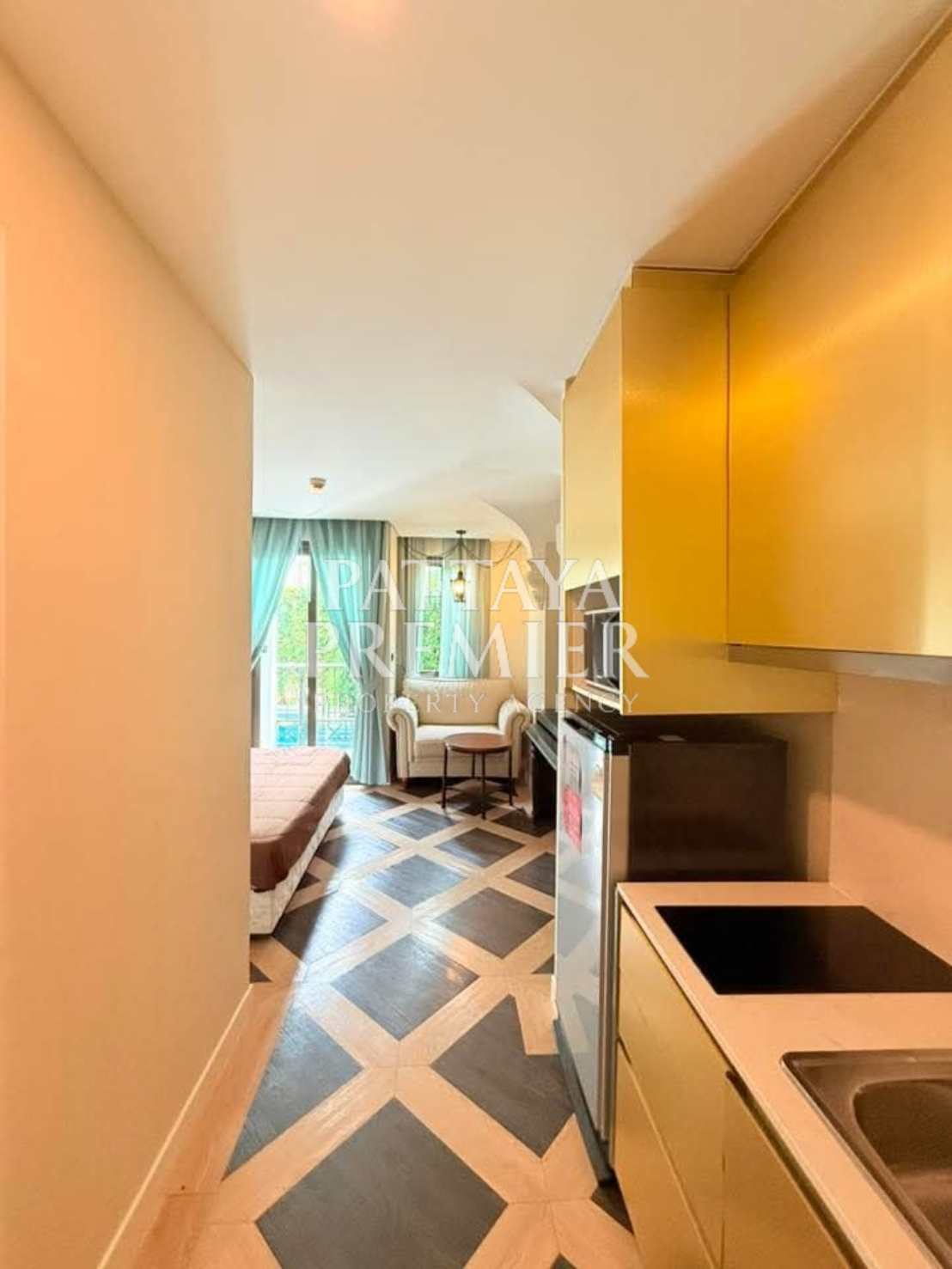 This ground-floor studio unit offers direct pool access, allowing you to step right into the water from your private terrace. The corner location near the entrance adds extra privacy and convenience, making this unit one of the most desirable in the complex.